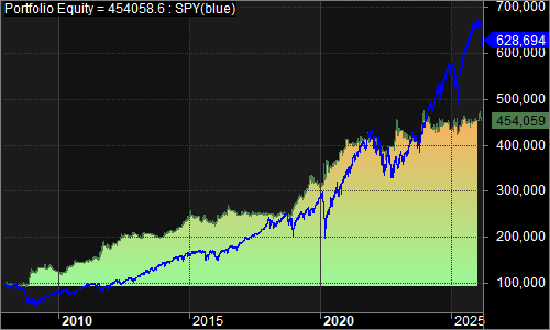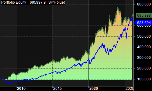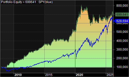 This is a unique strategy. I know the overall CAGR’s aren’t as large as the equity strategies, but the beauty in Navigator is just how uncorrelated it is from everything else. Bond ETF’s aren’t as popular with traders, and the edges here are less likely to be affected because traders just don’t tend to go after bond ETF’s.